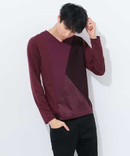 様々なカラーとテクスチャの違う素材を組み合わせたデザインカットソー。風合いのある色味と着回しの利くVネックがコーディネイトに個性をしっかりとプラスしてくれる一着です。model:H185 C81 W66 H91 着用サイズ:48