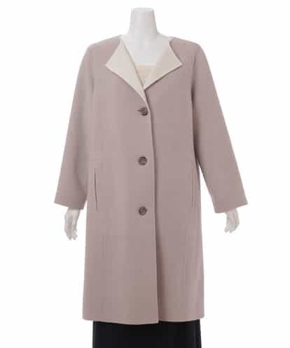 [クリスチャンオジャール大きいサイズ]配色のダブルフェイス仕立ての柔らかで滑らかな一枚仕立てのノーカラーコート。 ウール100%ですがカシミヤが入ったような肌触りと光沢と柔らかなタッチで着心地感抜群です。端々の縫製をリバー仕立ての手仕事で縫われた贅沢な一品。 ノーカラーのドロップショルダーでサラリと着るだけでサマになる一枚。 手仕事で縫われた大人の贅沢なコートです。