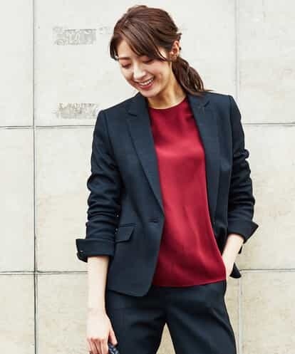■ミッシェルクランこだわりのPLUS JACKET■夏好評いただいたミッシェルクランプラスジャケットが素材を秋冬仕様に変えてさらにブラッシュアップ。再度パターンやサイズ感を見直し、身体のラインが美しく見えるパターンを追求。もちろん着心地にもこだわりました。ウール混ですが、ウォーム感を抑える加工でドライタッチを実現。晩夏・初秋〜春先までロングシーズン着用可能です。生地表面の自然な光沢はそのままに、ストレッチ性と軽さも兼ね備えた1枚。 さらに秋冬はお客様のご要望にお応えして同素材スカート▼FMHKB31170もご用意いたしました。セットアップでも単品でも着回し可能。着て頂く方に「プラス」を感じて頂けるジャケットです。